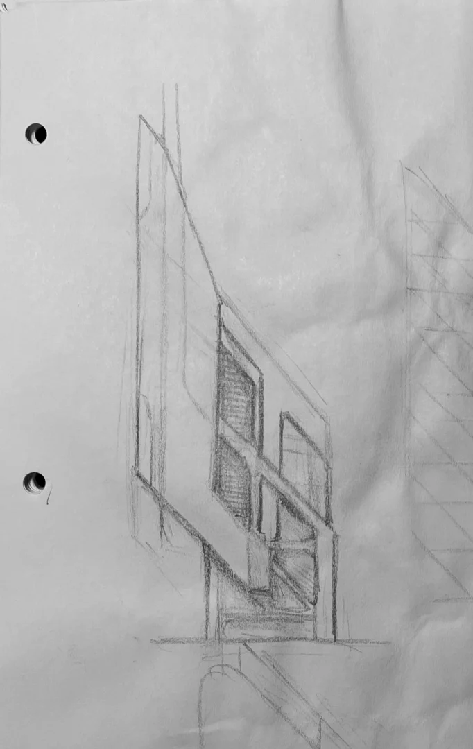 Usually it starts with a simple sketch done with pen or pencil. I can’t draw very well, and it actually kind of helps, as unintentional variations in the lines I put on paper help transfer a generalized, slightly blurry idea into a more specific form.