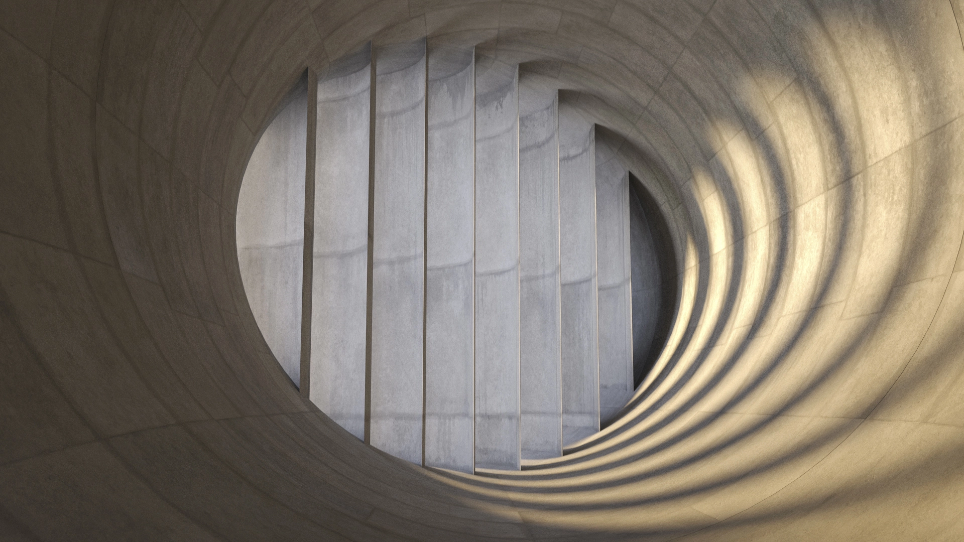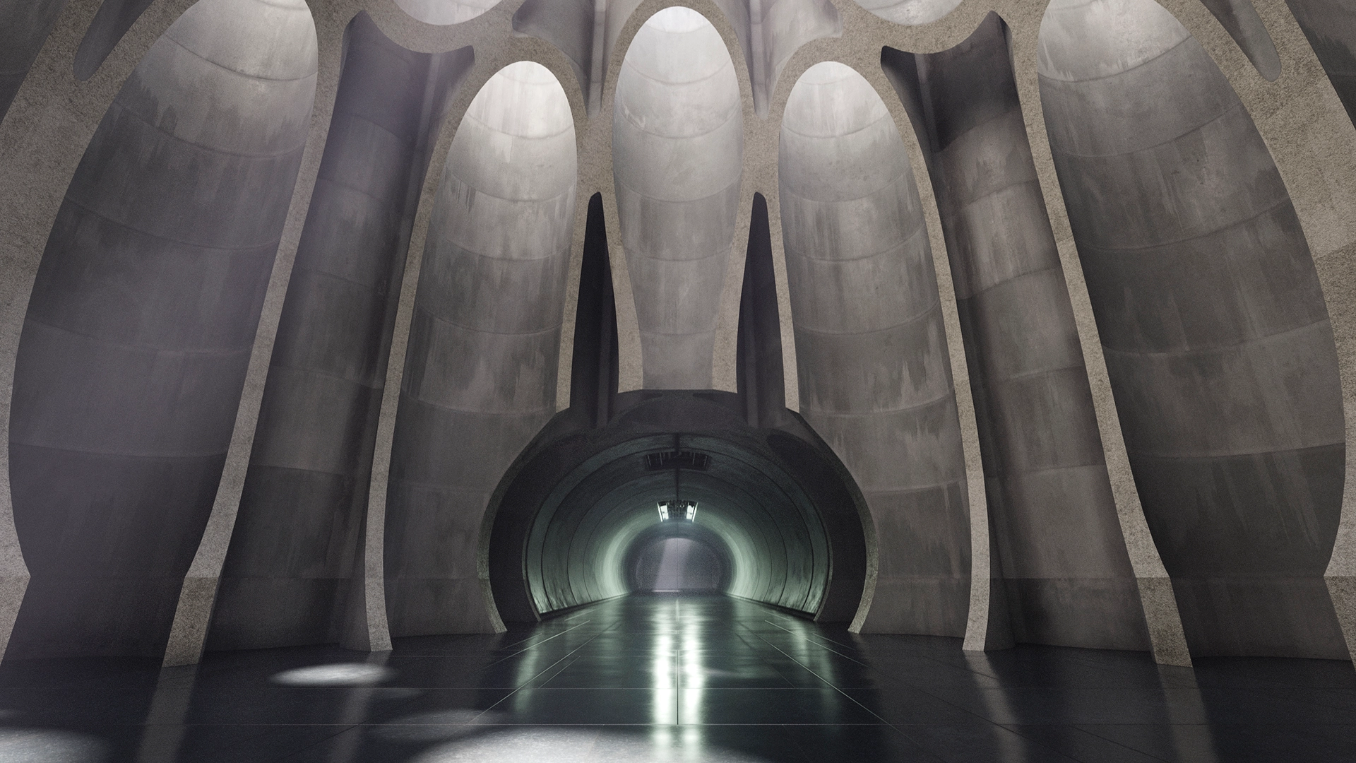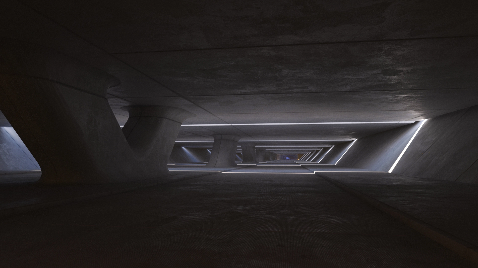 I think composition comes first, with lighting as an integral part. As photographers say, “all you see is light.” I try to keep that idea in mind when working on the basic forms, so light and geometry help shape each other. Then I usually try to imagine what kind of world the scene could belong to. Maybe this is a utopia from the future, 200 years from now. Or a dystopia. Or something that could be built today.